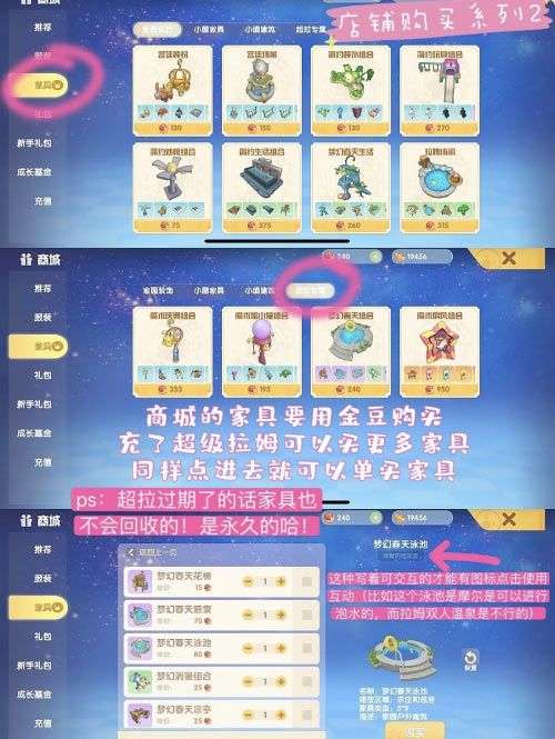 2,商城-家具(用金豆购买)、超拉专属(需要充卡这些才能用金豆购买,超拉过期了家具也不会消失)