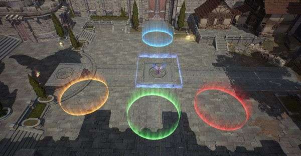 勇士们进入答题场后,集中在场景中心区域,场景中还有答案选项区【A】、【B】、【C】区。在准备期间会展开阻挡,勇士们无法离开准备区域。