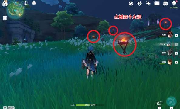 点燃「阵代屋敷」秘境前的火把后,启动机关,即可开放秘境。