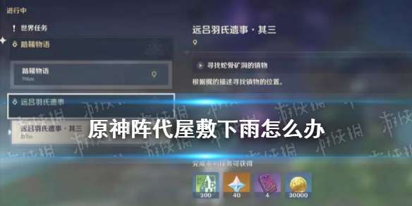原神阵代屋敷下雨怎么办?阵代屋敷是原神2.0中新开启的副本,解锁需要利用门口的火把,但八酝岛雷雨不停的天气却给小伙伴们造成了困扰。那么阵代屋敷怎么解锁呢?接下来就让我们了解一下前置任务远吕羽氏遗事·其三吧。