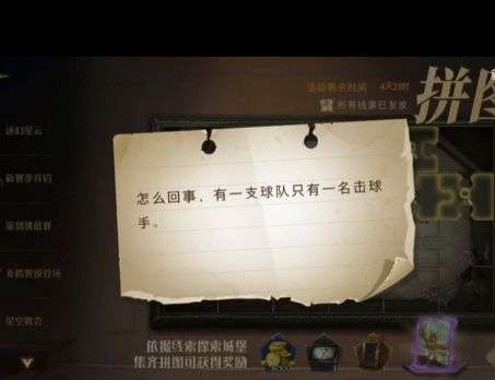 哈利波特拼图怎么回事,有一只球队只有一名击球员,这个任务怎么做,提示是什么,如何完成呢,很多人的人都不是太了解的,具体的完成方法是什么下面就来介绍下哈利波特拼图怎么回事线索在哪。