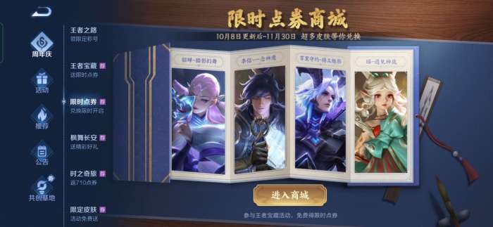 王者荣耀限时点券换什么皮肤好?最近王者荣耀开启了限时点券活动,小编目前已经获得了五百的限时点券了,那么大家知道在这些皮肤中哪些皮肤最值得兑换吗?