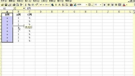 6、和刚才一样,按住“Shift”键拖动“B列”内容到如图显示“工”状位置,松开鼠标。