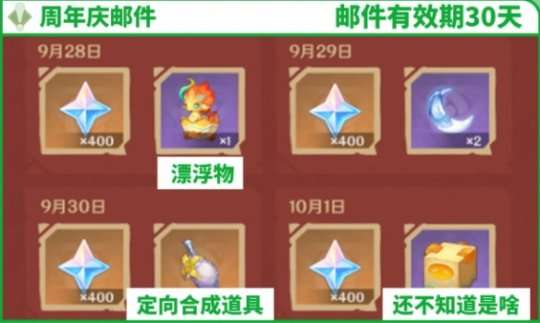 周六(9月28日)会发放周年庆右键,在邮件发放后的30天内有效。