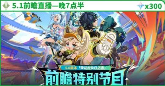 在9月27日(周五)晚上7点半,会有一场名为“5.1前瞻直播节目”的活动,活动场所将会发放300个原石。