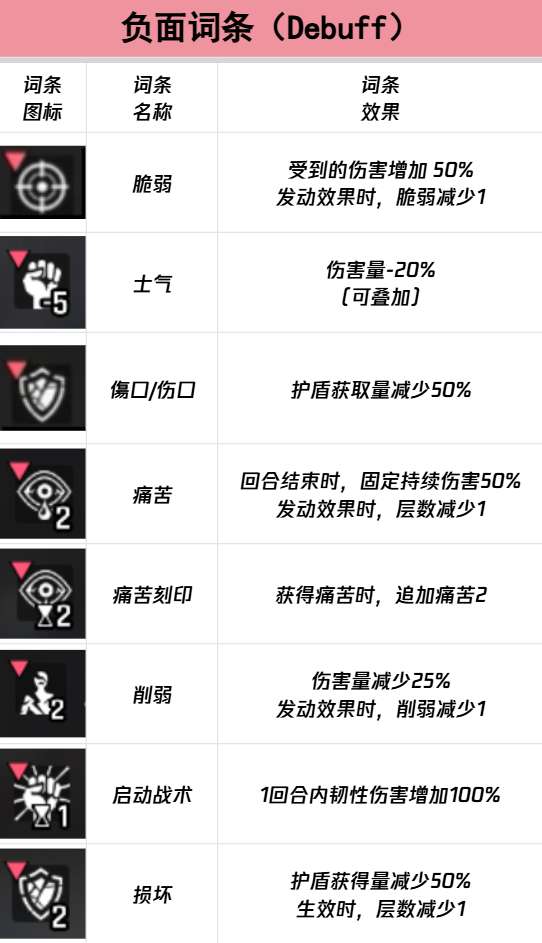 接着,来说说负面词条。脆弱是一个能让你付出代价的负面效果,它会让你承受更多的伤害——高达50%。不过,这个词条并非完全无解,每次脆弱状态发动时,它会减少1层,所以你在某些回合内可以通过消耗掉脆弱层数来减轻自己承受的压力。如果能合理掌握脆弱的持续时间,避免过多叠加,可以有效控制其带来的负面影响。