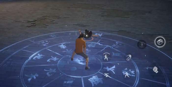 他的投技“催云门”会施展出太极法,打破对手的防御之后,再进行攻击一次,他的“回沙踏”会在向前进行踏步的同时用拳掌发动攻击,最后接上踢击,这个技能的前两招可以让对手进入强制站立的状态之中,可以衔接4A,来去追击被击飞的敌人。