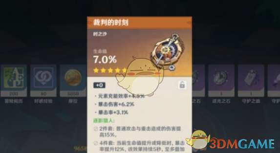 1、时之沙:生命值或元素充能效率。如果武器是充能武器或者队伍中有充能辅助,可选择生命沙提升输出能力;若觉得大招释放频率不够理想,优先选择元素充能效率,双水则选择生命。