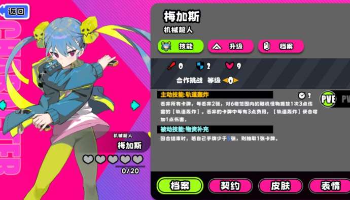 当然如果大家是玩的合作模式,这里就要注意梅加斯的定位一般就放在功能辅助效果上面,她的主动技能在这个时候可能会需要跟敌方的血量放在一起看,只要队友在接战的时候发动自身技能效果的话,这里梅加斯就可以利用自己在轨道轰炸上面的效果来削弱怪物血量,并且在团队里面的效果也可以利用她的能力来进行提升,而且她在被动效果上面也可以带来一部分的物资补充能力,她只要是手牌没有达到5张效果的时候,每一个回合里面都会给自身补充另外一张手牌,所以这里的过牌手段,相对来说也是可以通过弃牌这类伤害来保证整体的输出可以连接上的,另外她在生存的效果上面,其实可以通过升级来保证有生命数值的加成,当然如果她擅长此类对战的话,一般是用作星币收益主要用法的,所以放在生存位上面也是不错。