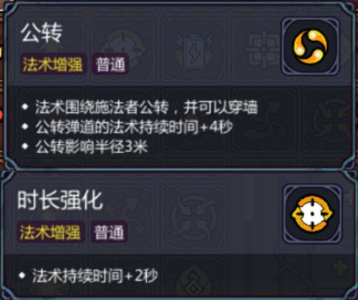 魔法工艺黄老饼套装怎么搭配,黄老饼套装主要靠大坐的百分比伤害打后期boss,所以法术和遗物主要考虑生存和清小怪,选择核心法术闪电疾行,持续期间无敌,用公转和时长强化增加持续时间,公转还有一个作用是让法术变成原地转圈圈,方便操作。