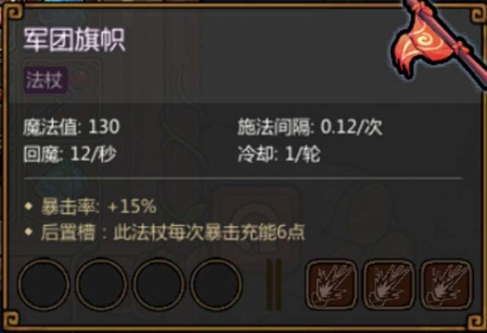前期法杖推荐军团旗帜,暴击充能,刚好闪电疾行是高暴击