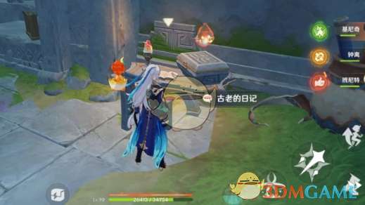 6、从神瞳下方的洞口跳下去拿到珍贵宝箱,开启获取古老的笔记,点击调查,就可以启动装置。