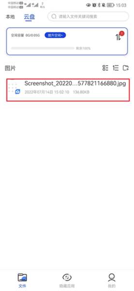 4、上传成功后在云盘中刷新就能看到刚刚上传的图片了。