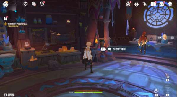 2、然后往西北方向走,到达下图后观察房间内的纪念品,交互观察护身符