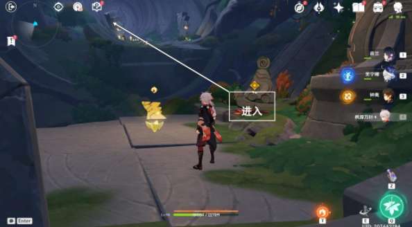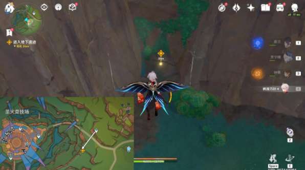 4、然后前往圣火竞技场东南方向锚点,到达后前往山崖下秘境处