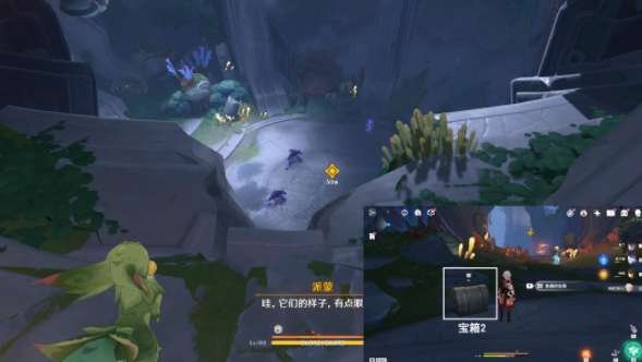 5、接着往南方向走探索遗迹,然后和玛拉妮对话1分钟,得知要寻找宝箱