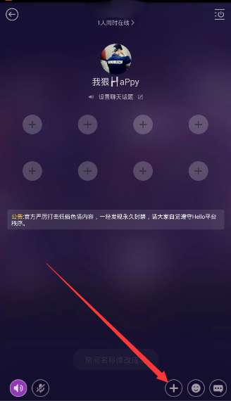 1、首先进入我的房间,然后点击右下角的【+】号;