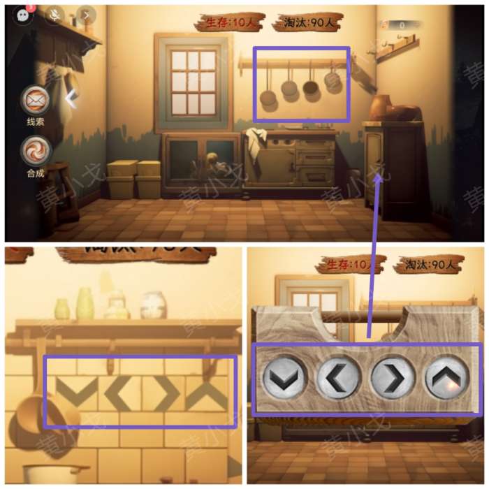 ②将衣柜上的箭头告诉女主:左下,左,右,上