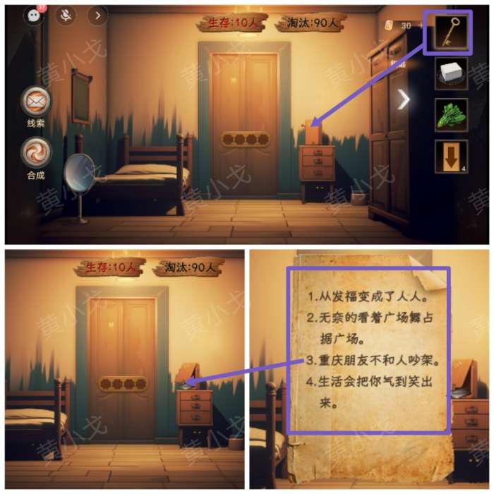 6.用【钥匙】打开柜子,查看纸条内容,告诉男主