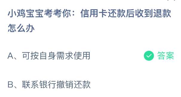 1、小鸡宝宝考考你:信用卡还款后收到退款怎么办
