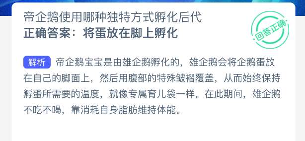 1、帝企鹅使用哪种独特方式孵化后代