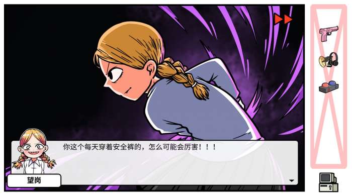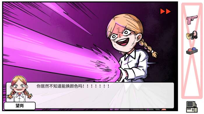 此时,另一女生望岗站了出来,她使出了紫色的下真空波动拳打算和我们对波。