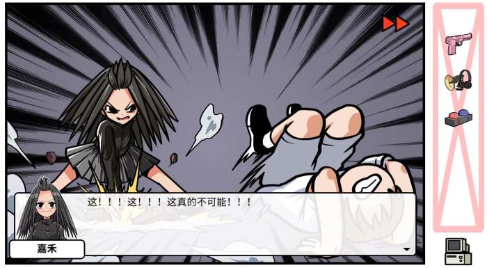 对战嘉禾主要分为3个阶段,需要在屏幕上的一堆乱七八糟的指令中找到“躲闪”来闪避嘉禾的攻击,每个阶段难度都会加大。