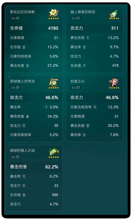 分别对两个套装简单测试了一下,带暴伤武器带黑曜套,暴击武器带风套,两者在圣遗物评分差不多的情况下,实战中伤害差不多