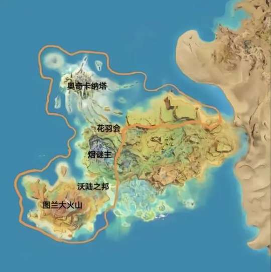 地图的北边是奥奇卡纳塔,南边是沃陆之邦和图兰大火山。据预计,烬寂海将被添加到图兰大火山地区。