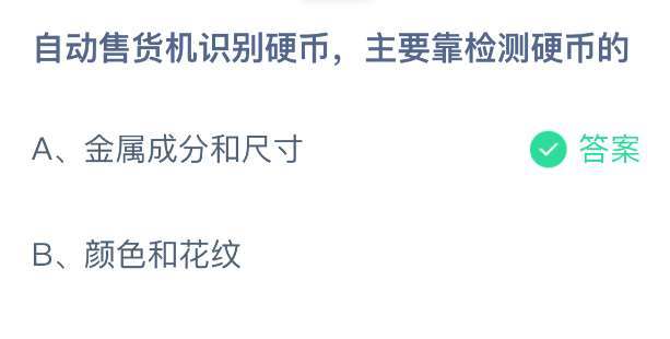 自动售货机识别硬币,主要靠检测硬币的?支付宝小鸡课堂开课啦!每天花一分钟答题赚饲料,喂喂小鸡就能贡献爱心啦!轻松又意义十足!2026年1月3日蚂蚁庄园的小鸡课堂题目正确答案是【金属成分和尺寸】,投币机在识别硬币时,主要通过检测硬币的尺寸、重量和材质来确保只有符合标准的硬币才能被接受。