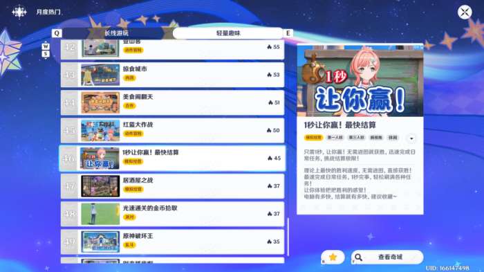 甚至可以做“1秒让你赢!”,帮助其它玩家快速完成日常任务。