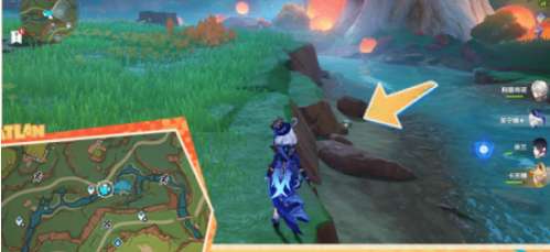 3、接下来抵达【悬木人】的西端,沿河岸的石头堆中捡起快件。