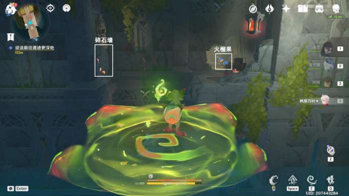 前往遗迹内,获得火神瞳,跳下遗迹底部