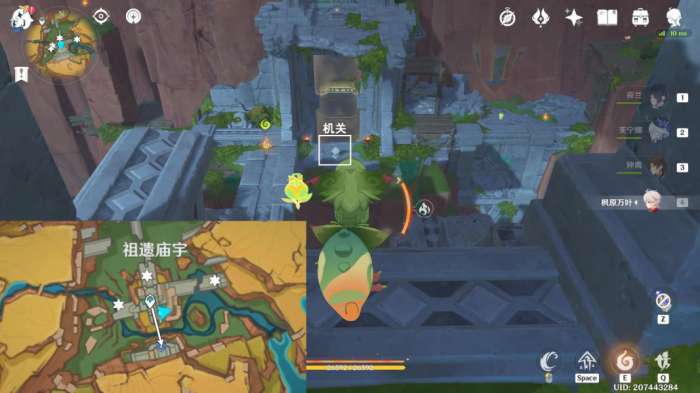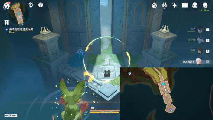 完成灯相解谜,解锁机关,交互机关“操作”,遗迹水位下降