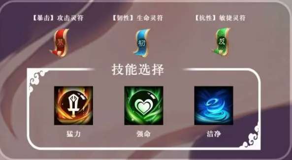 而她的最后一个被动叫做凤仪天下,这个技能是跟她的凤凰泣血效果有关的,这个被动触发的时候,就可以给她自身风寒爱心的状态带来技能伤害提高的效果,提升的数值达到了25%,而且还有45%的概率可以对敌人带来一个受治疗效果降低的影响状态,这个负面状态给敌人带来影响的同时,持续3个回合里面,大家就可以根据己方队伍的输出来进行激活,如果大家想要张春华更好用的话,这里可以给她考虑到的灵符有暴击攻击类的灵符,然后还有韧性生命灵符也是比较适合张春华的,最后就是抗性类的灵符也很适合她,因为她毕竟是一个控制类的武将嘛,那么,这里给他搭配额外的技能选择,可以推荐的是猛力加上强力以及洁净,这样的话,让她的净化能力可以更好用一些。