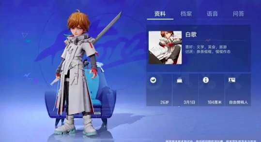 白歌这个角色手持一柄长剑,而他的喜好则是文学、美食和旅行,每一次抗击都尽显侠客风范,同时身上还散发着一种文艺气息,不愧是李白为原型的衍生体。
