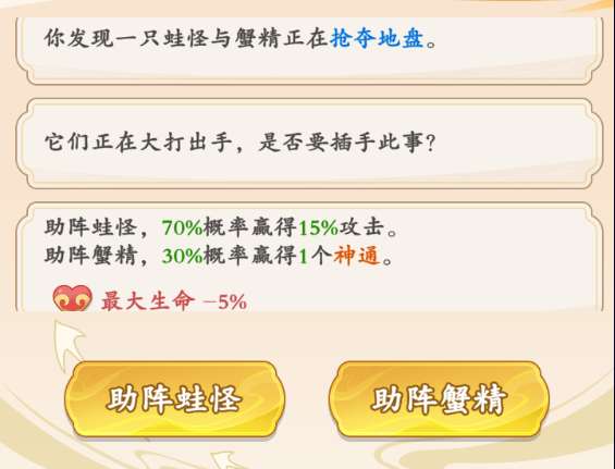 在历练修行玩法中,道友在每一天中将遭遇不同的随机事件。根据不同的选择,会给自身带来不同的增益和经验或者获得游戏道具,也有可能运气不佳获得减益属性。