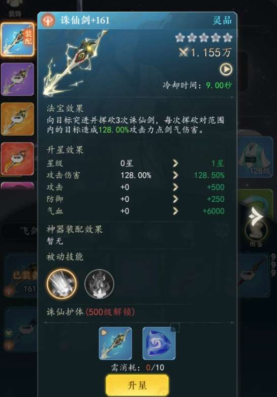 封天剑也是比较推荐的一个武器,相比其他武器,封天剑这是和朝多名成员进攻,挑战过程中,角色会直接向对手的中心位置释放剑阵,只要是在见证范围内,都会受到大量的剑气伤害,玩家可以选择多把武器同时上场,根据实际的需求切换使用,每个武器都能打出极高伤害,武器除了主动技能可以触发之外,每个还会携带两项被动技能,一般被动技能都可以提升玩家的伤害能力,建议成员通过升星的方式,让武器星级更高,从而达到更强战力。