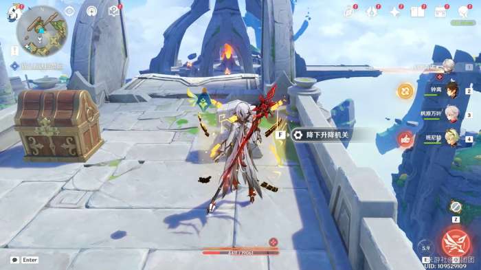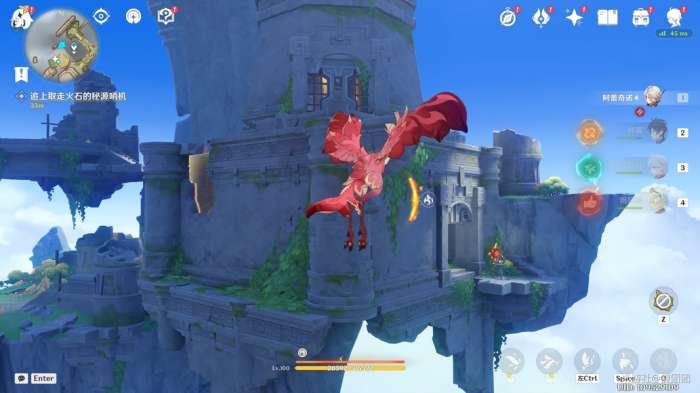 沿着右侧道路前进,升降机上去后小龙出现,然后跟着小龙前进。