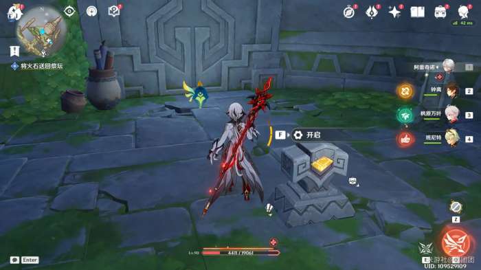 打掉怪物后上面出现宝箱,启动宝箱后面的机关。
