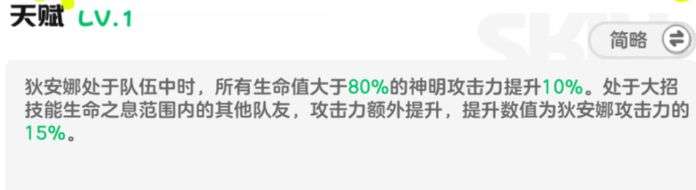 在天赋的加持下,所有生命值大于80%的神明,其攻击力能额外提升10%。