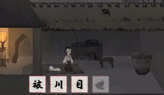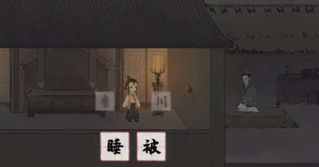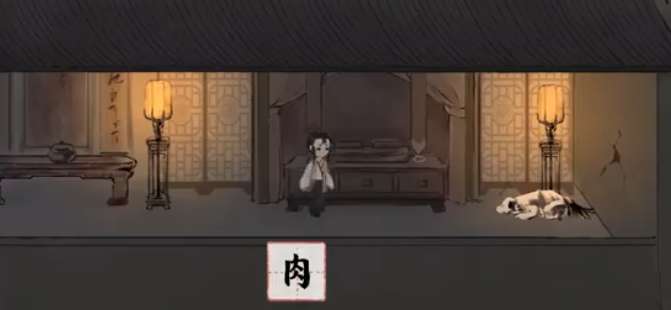 《栖云异梦:梦蝶》第六关“入室”中,首先从桌案取【肉】喂狗使其离开,与书生对话后收集【被】、【钏】与【睡】。将【睡】拆为【垂】,【钏】拆为【钅】,组合成【锤】砸开墙壁。获取【桌】后,拆解【被】得【礻】,【桌】得【卜】,合成【补】修复破损墙面。最后点击屋内的【缸】,进入其掩盖的地洞即可推进剧情。