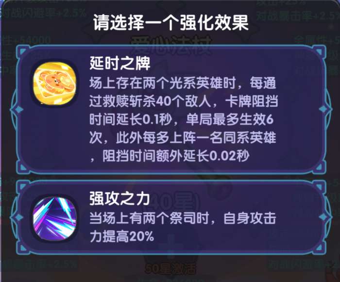 另外,神女轻音的专属神器“爱心法杖”升星第50星级带来的技能效果也十分强势。可以看出,神女轻音的登场,不仅带来更独特又强力的辅助和伤害能力,更进一步强调同种族或同职业属性的羁绊,因此当场上拥有越多的同系或同职业英雄,带来的提升也就越大。
