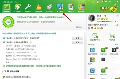 1、首先打开360安全卫士软件,点击“人工服务按钮”;