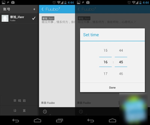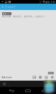 fuubo功能:fuubo是发微博的一款利器,首先经过简单的设置编辑好你要发的内容,Fuubo 会在 Android 的状态栏放置“立即发送微博”的快捷方式,点击它你就能马上进入发微博的界面。