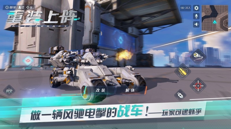 与好友组队开黑,你们还能搭配不同功能模块、组合出更多战术套路:正面幻像牵制、自己隐身突袭,或者远程重火力覆盖、全地形战车伏击……策略与对抗并存,给你新颖的战斗乐趣!