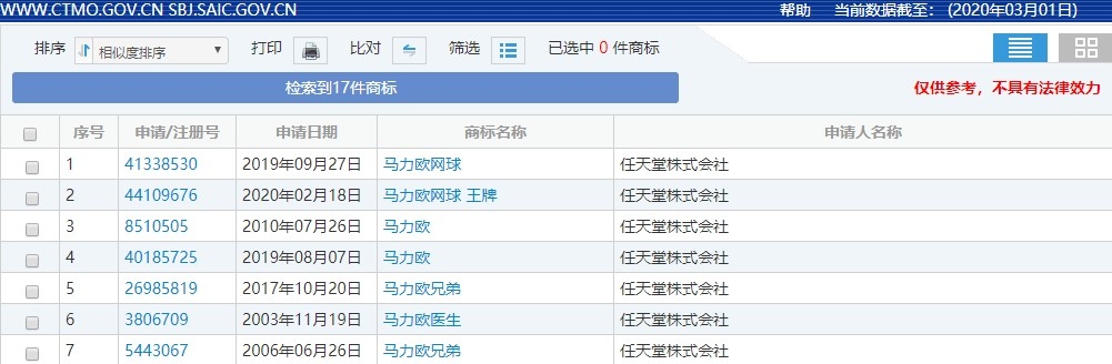通过公布的信息可以看到,任天堂于2020年2月18日注册了《马力欧网球:王牌》的商标,商标的国际分类为“9(包括计算机软件)”