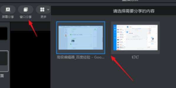 4、点击顶部的【窗口分享】,选择一个需要分享的窗口。