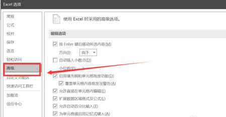 3、然后就弹出了Excel选项界面,这里有很多设置功能哦,常规、保存、语言、高级等等,今天我们要用到的就是“高级”,所以赶紧点击它吧!
