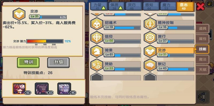 如果我交涉套装只穿一半,等级为31级,则回购的价钱为1万2千七百五,单个能力获取卷轴赚取差价为3千7百5十。